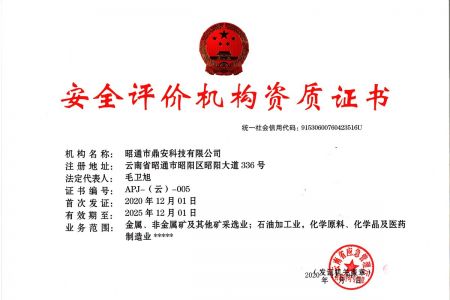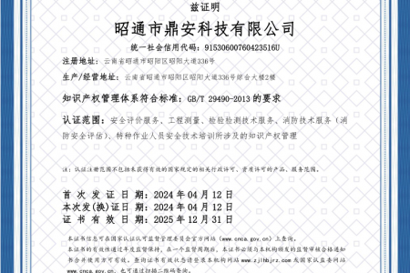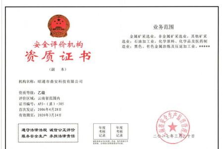 2003年11月10日,昭通市鼎安科技有限公司成立,初始主要從事第三方安全工程技術服務,經多年運營,發(fā)展為多專業(yè)綜合科技平臺,為社會提供多種專業(yè)技術服務工作。 現公司注冊資金為1200萬元,公司法定代表人:毛衛(wèi)旭。公司主要業(yè)務:安全評價、安全標準化評審、安全工程技術服務;環(huán)境監(jiān)測、職業(yè)衛(wèi)生檢測、檢驗;法律訴訟及非訴訟服務;司法鑒定、固定資產投資項目節(jié)能服務;工程咨詢;工程測量測繪;安全教育培訓等。是安全生產服務、安全教育培訓機構,也是環(huán)境監(jiān)測和職業(yè)衛(wèi)生服務機構,同時也是綜合的檢測檢驗、綜合科技平臺服務機構。多年來為公、檢、法、司、軍、警、海關、仲裁、安監(jiān)、工礦商貿企業(yè)、社會團體及個人提供多專業(yè)技術服務。